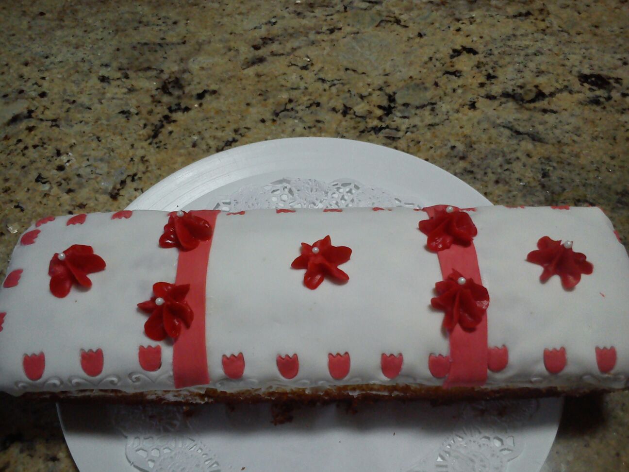 Una de las que he preparado yo es con una fina capa de fondan blanco y figuras rojas con un poco de frosting rojo y algún que otros corazón rojo de chocolate.