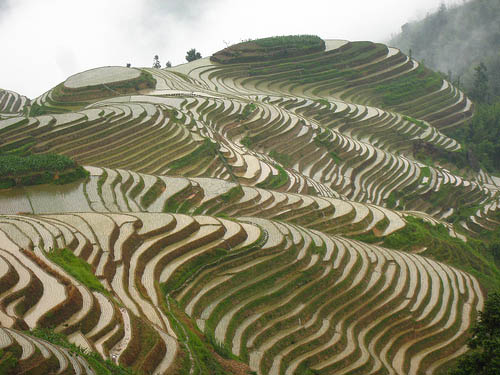 El siguiente paisaje son los arrozales de Guilin en China, al sur de Pekín. Enormes colinas que adoptan formas sorprendentes gracias al cultivo de este cereal.
