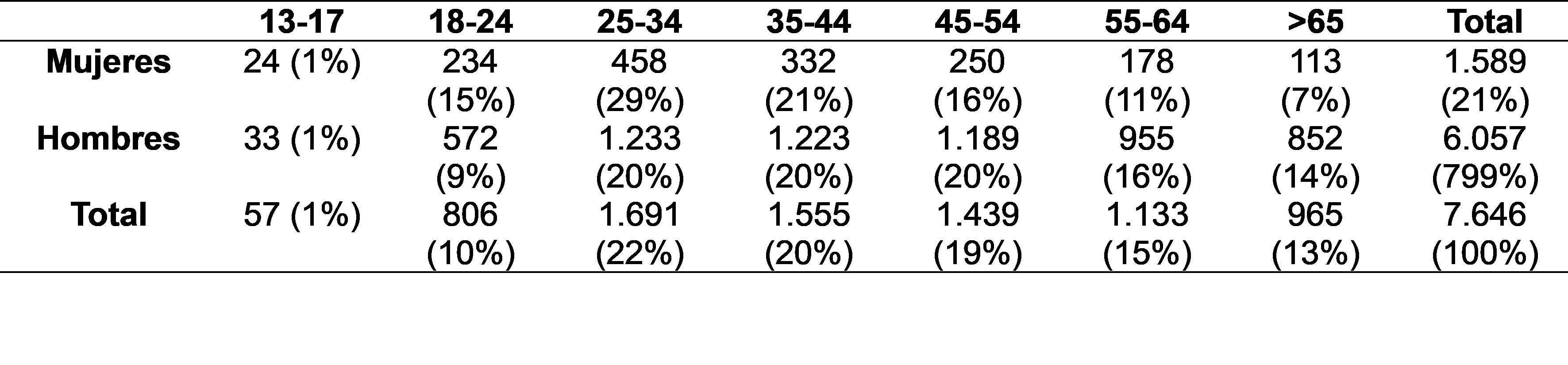 Tabla 3 Distribución por género y edad de los miembros del grupo de Facebook Coleccionar Cámaras Antiguas.