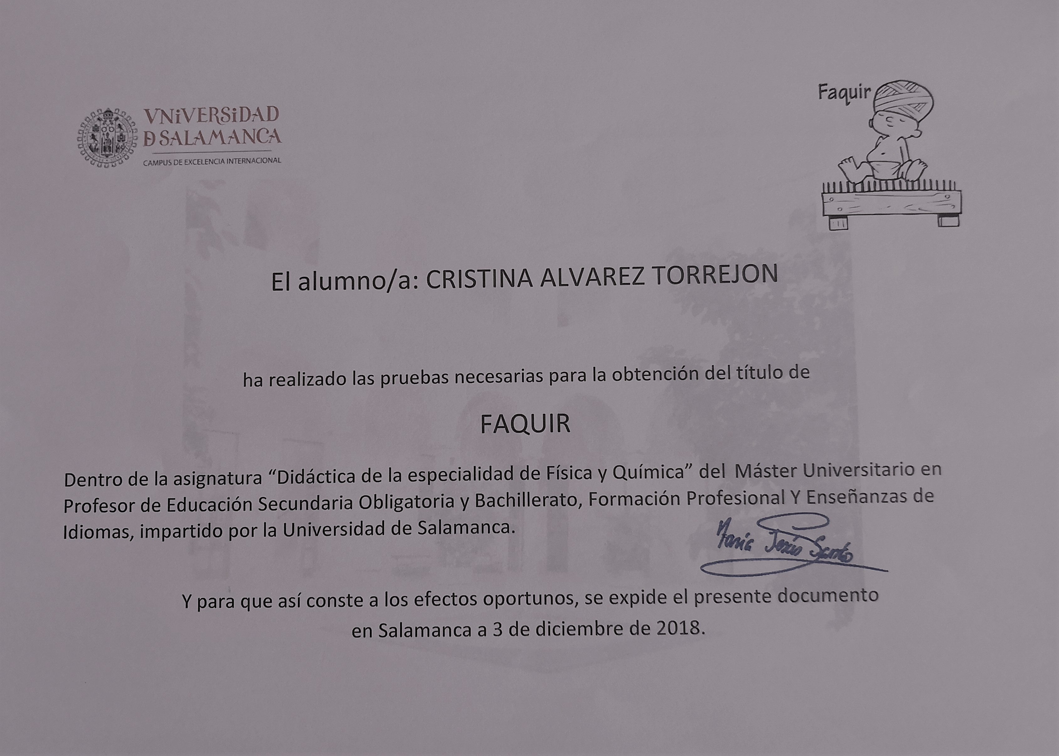 Lo mejor…la gran sorpresa de recibir días después un diploma de Faquir!! Así, sí que se motiva a tus estudiantes a involucrarse en tus clases!! Simplemente Genial!!