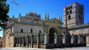 La catedral de Zamora se construyó en el siglo XII. Es una iglesia de tres naves,con un crucero que apenas sobresale en planta y tres ábsides semicirculares. Los ábsides románicos originales fueron sustituidos por otros góticos a final del siglo XVI mientras que el claustro y la fachada septentrional- por la que actualmente se accede- fueron reconstruidos en el siglo XVII debido al gran incendio que asolo el templo.