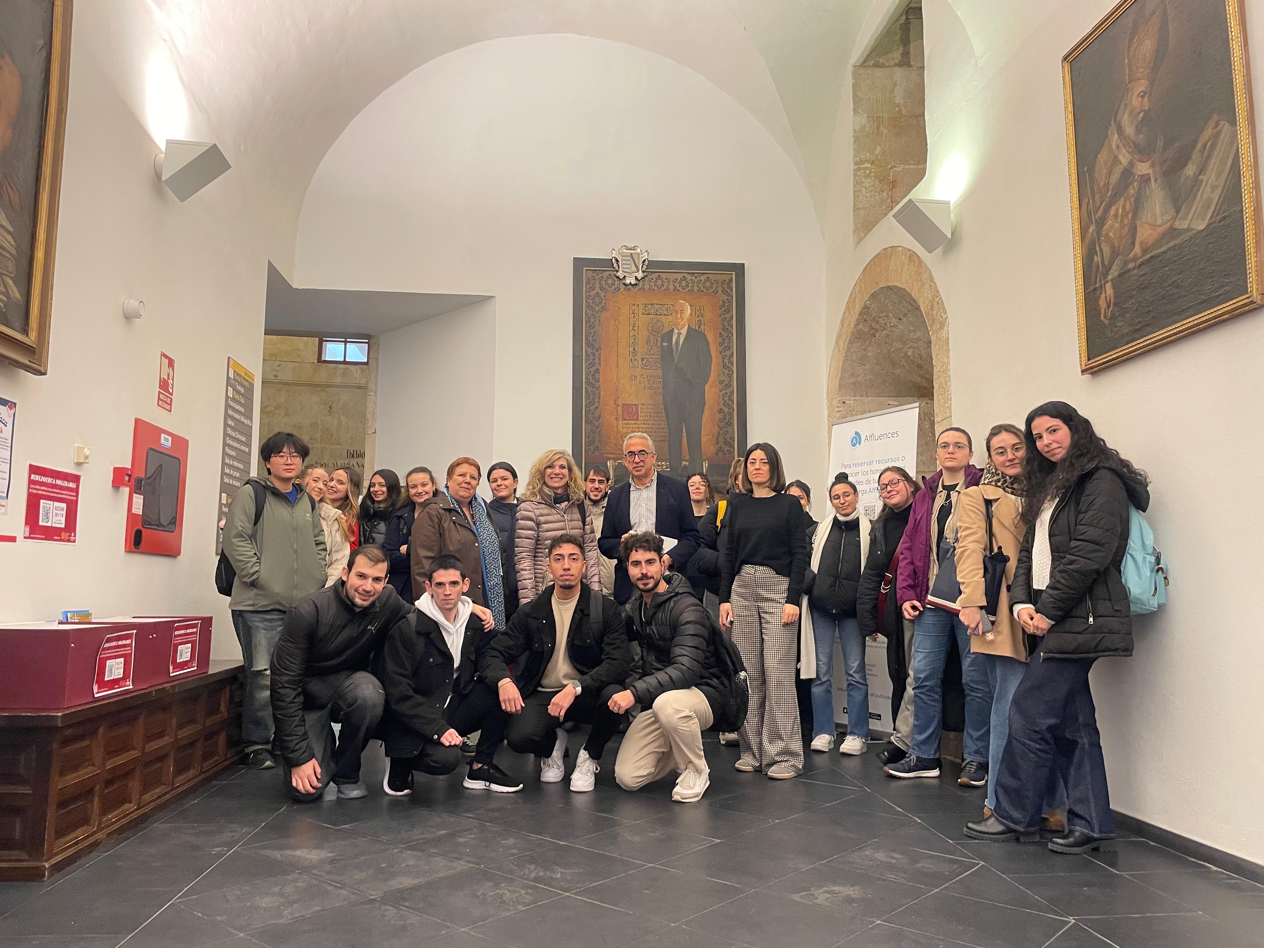 El pasado jueves, 26 de febrero, los estudiantes y profesoras de la asignatura obligatoria “Conservación documental” del Grado en Información y Documentación y de las dobles titulaciones asociadas a él, realizamos una visita al Taller de Conservación y Restauración de la Universidad Pontificia de Salamanca, organizada por la responsable del mismo, Dª Katia Martín Polo. Fuimos recibidos por el Director de la Biblioteca, el catedrático D. Antonio Sánchez Cabaco, y la Subdirectora de la misma, Dª Mabel Gonzalo Sánchez, que tuvieron la amabilidad de acogernos.