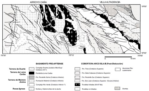 Keywords: Terranes. Oceanic plateau. Island arc. Accretion. Basement geochemistry. Caribbean Plate. Dominican Republic.