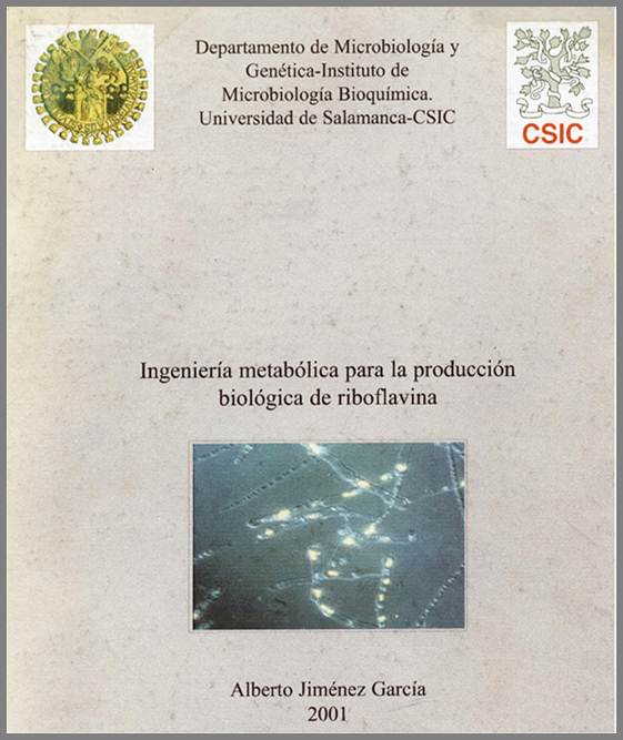 - TÍTULO: Ingeniería Metabólica de la Producción Biológica de Riboflavina. Doctorando: Jiménez García, Alberto. Programa: Fisiología, Genética y Bioquímica Microbianas. Año: 2001. Califación: Apto Cum Laude