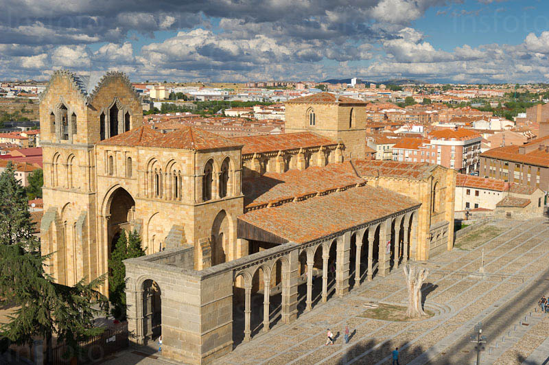 Extramuros, la basílica de San Vicente, construida en granito “caleño”, se levanta, muy condicionada por la orografía, en el lugar donde la tradición señala fueron martirizados y enterrados Vicente, Sabina y Cristeta. Es el gran modelo del románico en Ávila y sus cuidadas proporciones le convierten en un ejemplo único del románico hispano; receptor de las influencias foráneas y de la fábrica de la catedral, es al mismo tiempo difusor del estilo en la ciudad.