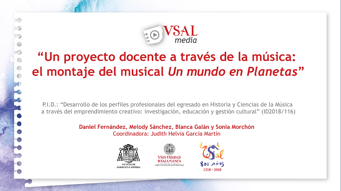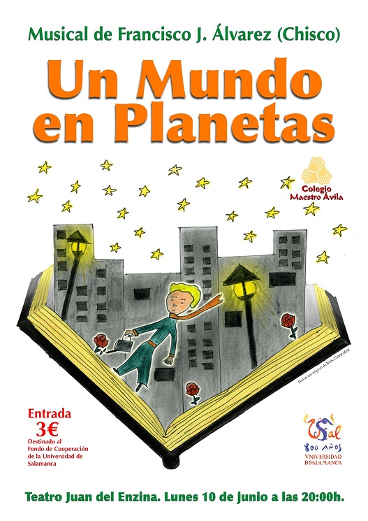 Una vez más, gracias al proyecto de innovación docente “Desarrollo de los perfiles profesionales del egresado en Historia y Ciencias de la Música a través del emprendimiento creativo: investigación, educación y gestión cultural”, se ha representado en el teatro Juan del Encina el musical “Un mundo en planetas”, compuesto por Francisco José Álvarez García, destinando la recaudación al Fondo de cooperación de la Universidad de Salamanca.