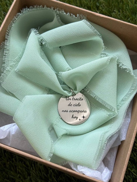 Aquí es donde un pequeño objeto cobra un significado gigante: una delicada medalla para ramo de novia, pensada para custodiar ese trocito de alma que quieres que te acompañe.