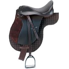 Montura inglesa: La característica distintiva principal de una silla de montar Inglés es su aspecto más plano, la falta de un cuerno, y el diseño de auto-relleno de los paneles: un par de almohadillas pegadas al lado inferior del asiento y lleno de lana, espuma, o aire. Sin embargo, la longitud y el ángulo de las aletas, la profundidad del asiento y la altura de la teja, todos juegan un papel en el uso para el que está destinado en particular una silla de montar.