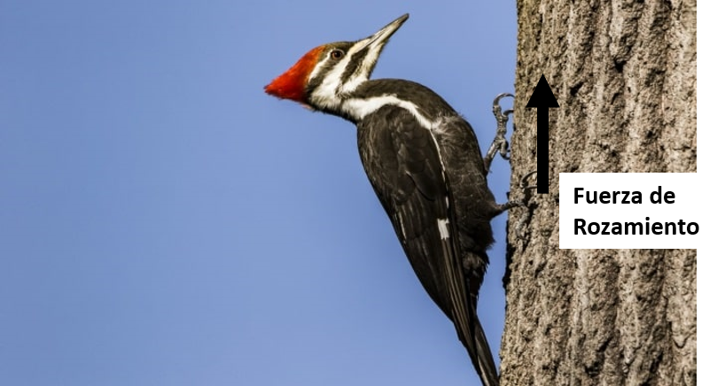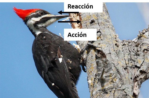 Pero después, se vence el rozamiento, porque al golpearlo con la mano, el pico golpea la barra y se va para atrás, por la tercera ley de Newton (ley de acción y reacción). Según esta ley, si el pájaro golpea la barra hacia adelante con una fuerza de un módulo determinado, la barra ejercerá sobre el pájaro una fuerza del mismo módulo y en la misma dirección, pero en sentido contrario a la primera.
