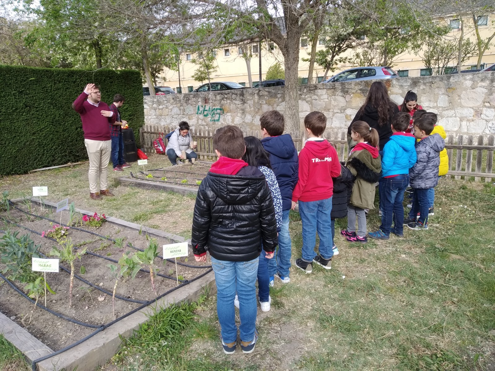 El siguiente paso fue mostrarles los ejemplares plantados en el huerto. Fue una visita dinámica, donde había un diálogo continuo entre los alumnos del colegio y nosotros. Desde el principio propusimos una identificación de las plantas a través de algunos de los sentidos, hicimos hincapié en el uso del olfato y del tacto; en el caso de las aromáticas recurrimos en varias ocasiones a la comparación de las plantas para que el aprendizaje fuera más significativo.