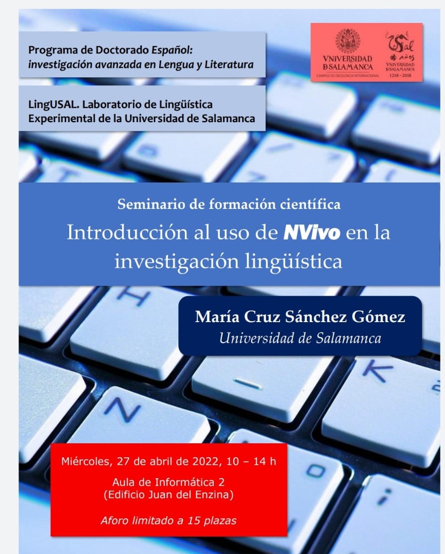 - Seminario de formación científica “Introducción al uso de NVivo en la investigación lingüística”, María Cruz Sánchez Gómez (USAL) (27 de abril de 2022)