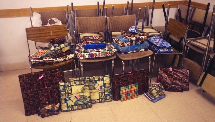 Nos tiramos unas cuantas semanas recaudando cosas. Y luego varios días seleccionando y envolviendo, vamos una locura. Pero por fin acabamos de envolver y de etiquetar cada montón de regalos de su respectivo futuro dueño/a. El resultado fue increíblemente bonito…