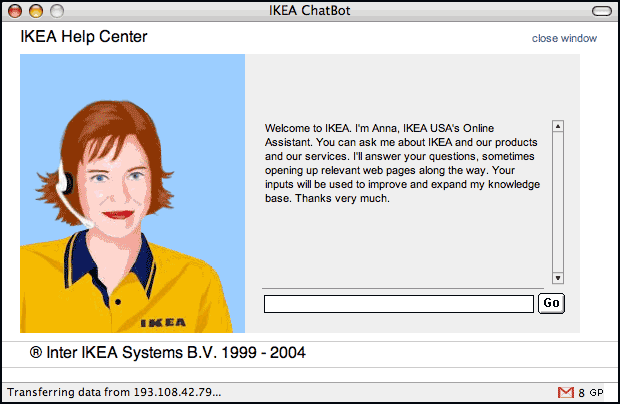 Este es un ejemplo de los muchos chatbots que podemos encontrar en la actualidad como el de Ikea llamado Anna que nos resuelve todas nuestras dudas online, Amazon, Destinia… En mi opinión es una gran herramienta que debería aprovecharse en muchos servicios ya que reduce tiempo, recolecciona datos de una manera más eficaz, ahorra costes y tienen una gran capacidad analítica.