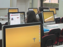 Entre la Facultad de Medicina y la Facultad de Farmacia disponemos de seis aulas de Informática: tres aulas con equipos PCs (con Ubuntu y Windows 7) y tres aulas con equipos Macintosh (con MacOS 10.6.8 y Windows 7)
