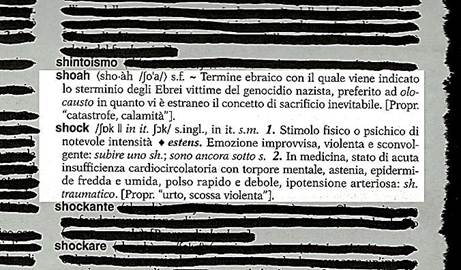 La página de diccionario hace con el utilizador un pacto perceptivo implícito, lo de presentar sus descripciones como una identificación de los fenómenos. El objetivo practico es lo de hacer tal definición en pocas palabras. Sin embargo este intento de identificación “rápida”, y sintética encuentra en el caso de un evento complexo cual la Shoah limites evidentes.