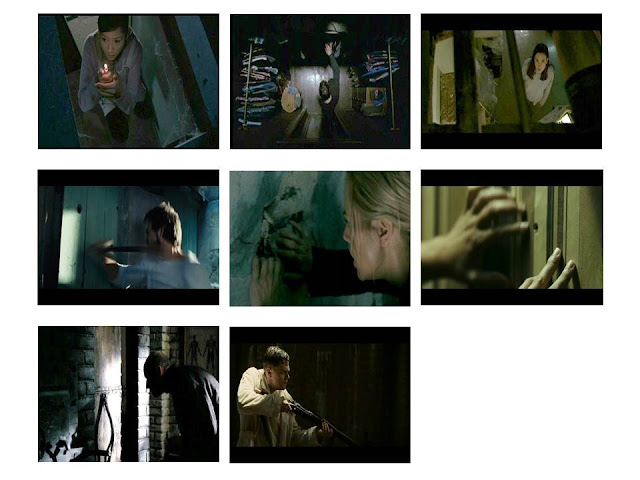 Cada fragmento es cortado así que empieza cuando (habitualmente entre el tercio o ultimo cuarto de la película) los protagonistas están buscando el origen de los fenómenos en el espacio físico de la casa. Cada película, cada guión, pone esa origen en un lugar diferente (armarios, sótanos, desvanes, etc.).