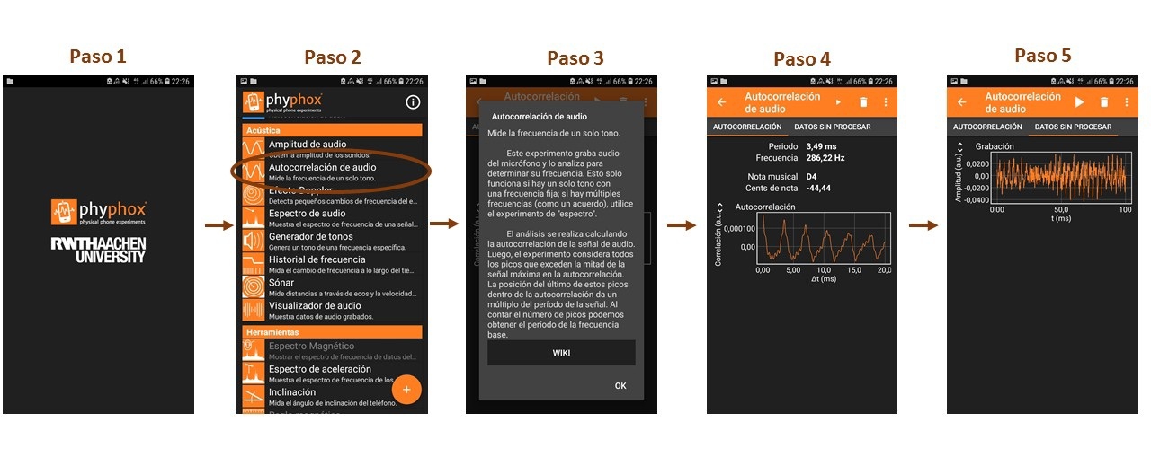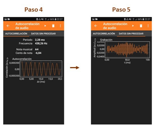 - Dentro del apartado de acústica ir a autocorrelación de audio,