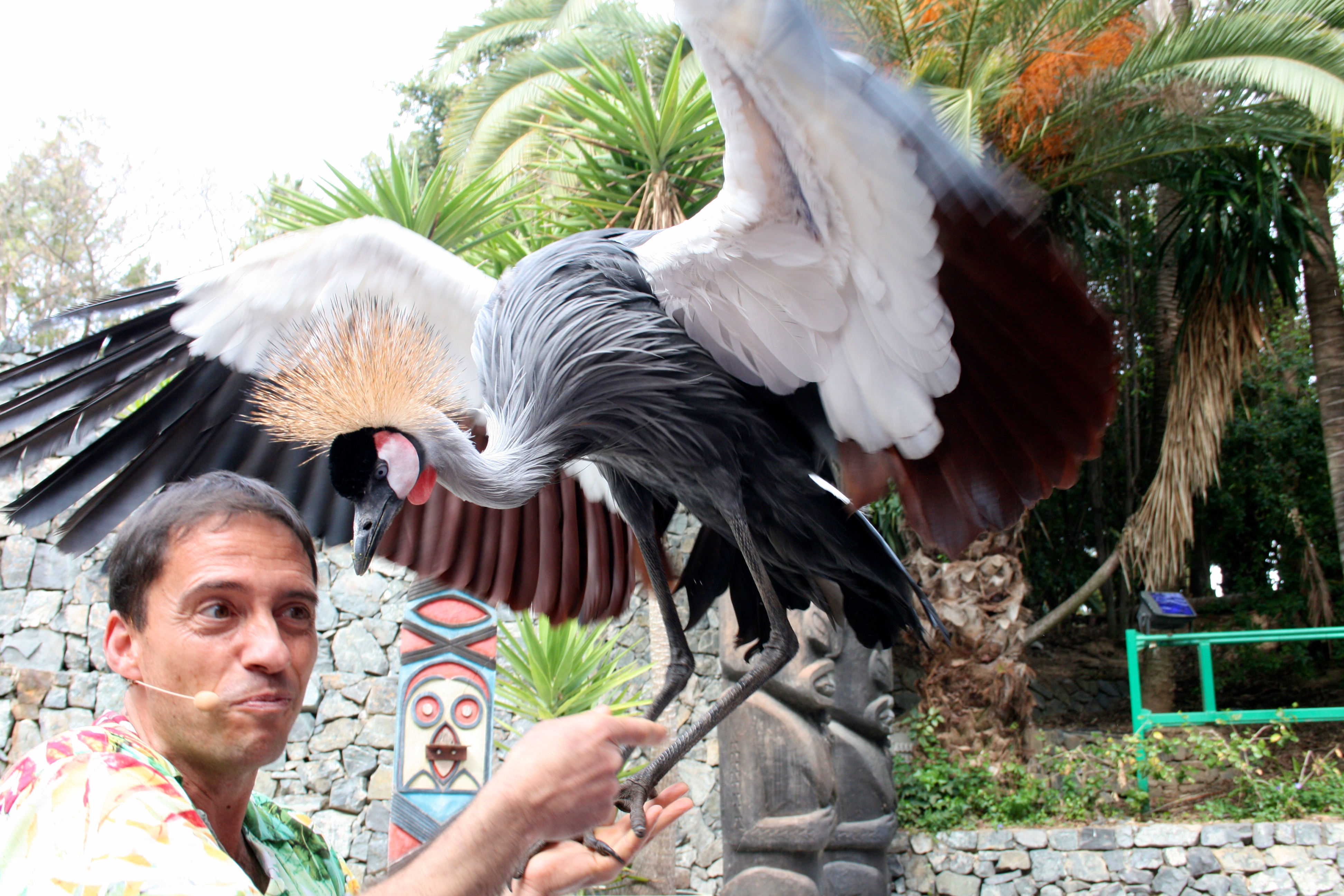 Esta foto está sacada en una exhibición de pájaros tropicales en Barcelona.
