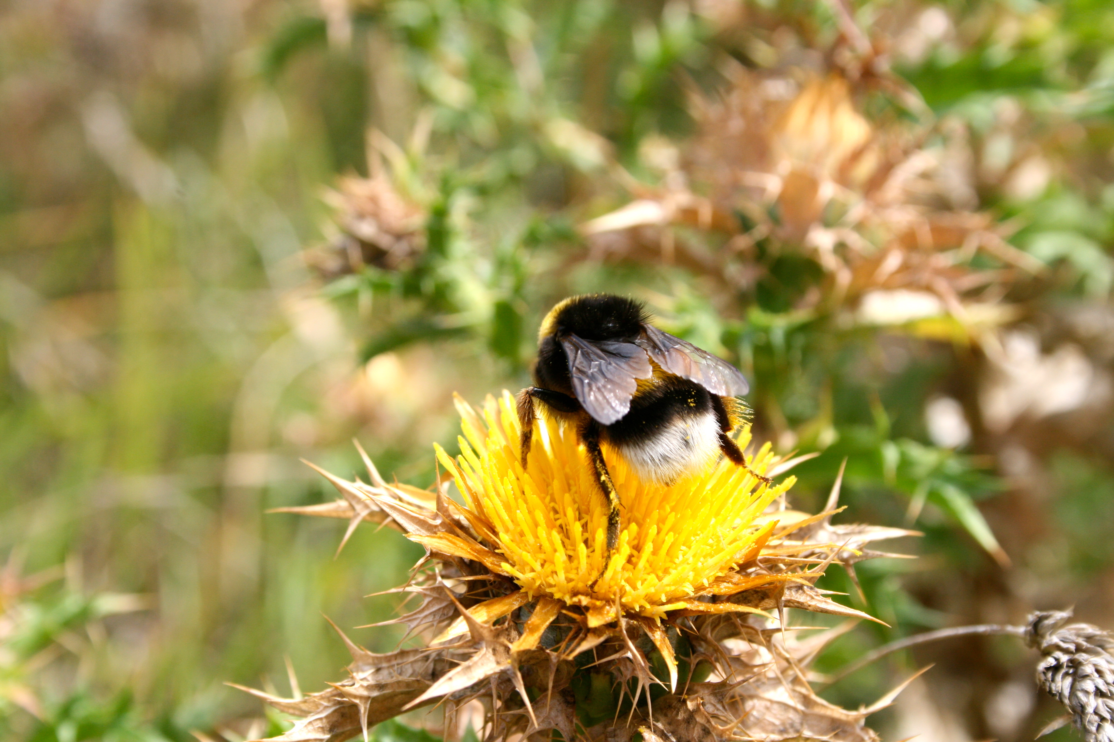 Ambas fotos están capturadas el mismo día, lo único que cambia es el sitio. La imagen de la abeja en la flor está sacada en Bakio (Bilbao) y la del atardecer está sacada en el monte Igeldo (Donostia)
