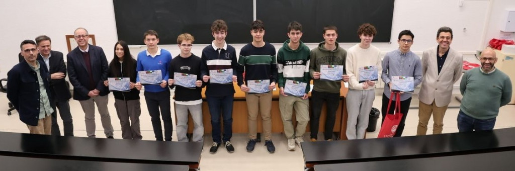 Los premiados, Diego Alonso Domínguez (IES Vaguada De La Palma, Salamanca), Rubén Alonso Gil (IES Federico García Bernalt, Salamanca), DanielBatalla Sáez (IES Jorge Santayana, Ávila), Sergio Bravo Álvarez (IES Fray Luis De León, Salamanca), Mateo Elvira Illán (IES Sierra Del Valle, La Adrada), Jaime Pablos Tavera (Colegio Santa Teresa de Jesús, Salamanca), Andrea Ruiz Flores (IES Vía De La Plata, Guijuelo), Iker Somoza Blanco (IES Isabel de Castilla, Ávila), Óscar Torres Martín (IES Campo Charro, La Fuente De San Esteban) y Julio Vivas García (Colegio Marista Champagnat, Salamanca) estuvieron acompañados por familiares y amigos. A la entrega de premios también acudieron dos premiados de la edición anterior, actualmente estudiantes del Grado en Matemáticas, Rodrigo Herrera Yáñez y Bruno Leonardo González.