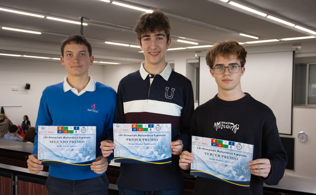 Estos tres estudiantes participarán, junto con otros nueve procedentes de los restantes distritos universitarios, en la Fase Autonómica de la Olimpiada Matemática, que tendrá lugar en León.