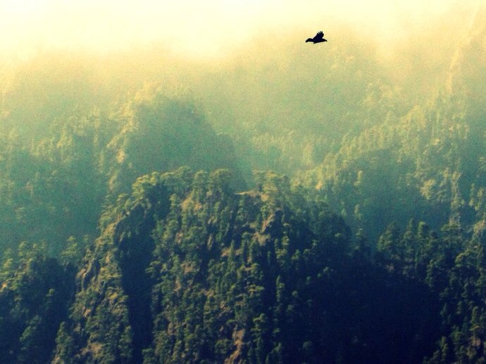 Para evitar el calor, hemos quedado en el mirador de Los Brecitos a las 7 de la mañana y, tras esperar a alguno que otro que en este mes ya no estaba acostumbrado a madrugar, hemos partido por el sendero que desciende por bosques de pino canario cruzando varios barrancos pequeños y adentrándonos en pleno parque nacional. Tras aproximadamente 1 hora (para los rápidos) y 1 hora y media (para los más lentos), hemos alcanzado todos la zona de acampada junto al Barranco de las Angustias.