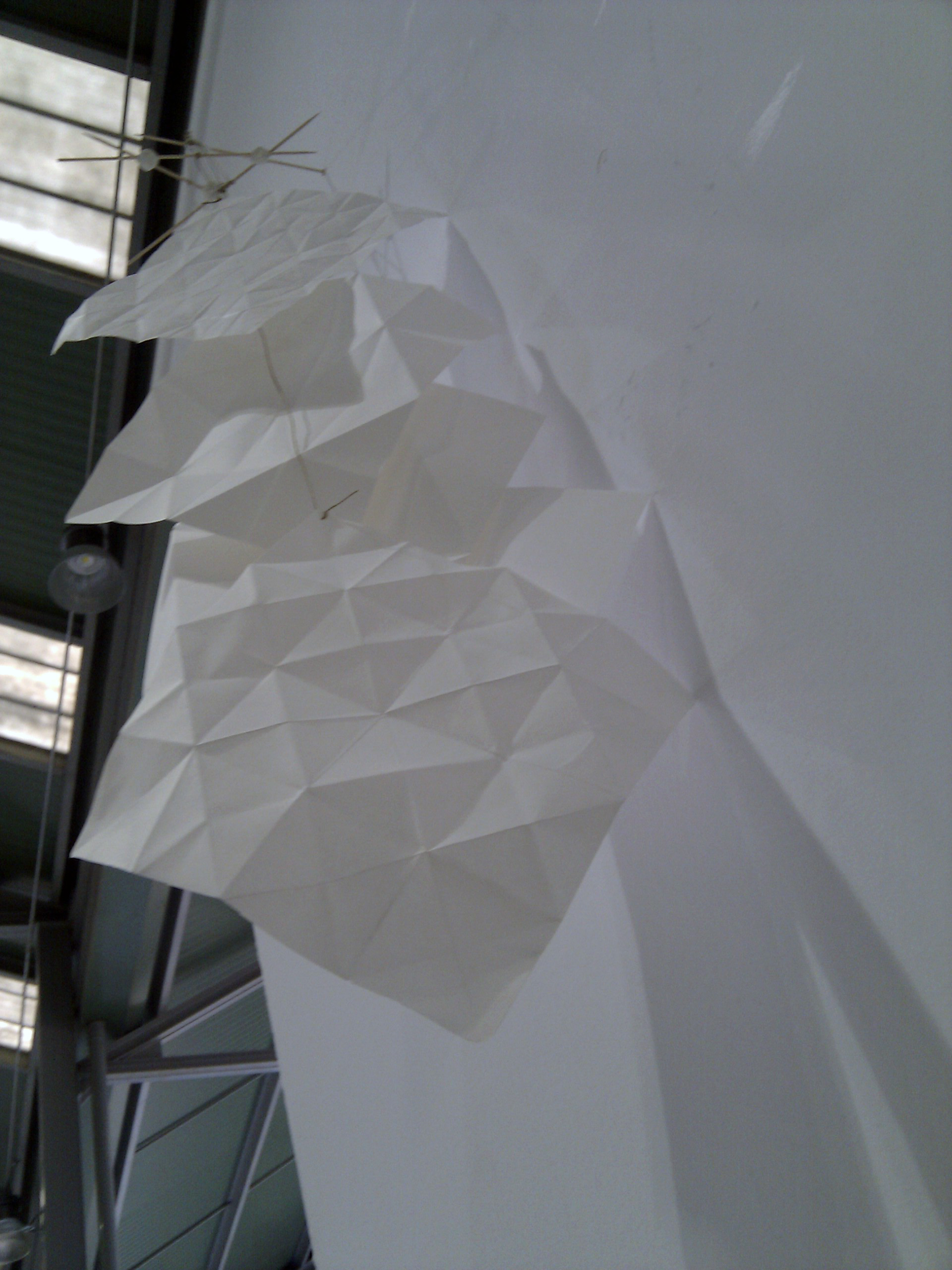 La ejecución, es decir la propia acción de doblar siguiendo un patrón es parte de la pieza, pues es un proceso en el que cada nueva doblez es un nuevo enlace o un elemento de unión entre la doblez anterior y la siguiente, formando una red. Proceso que me evoca la evolución y aprendizaje desde la niñez. Comenzando desde un vacío y llenando ese vació de enlaces hasta formar complejas redes de conocimiento. Uniones creadas con cada nuevo estímulo, cada sentimiento, cada nueva capacidad, cada dato…