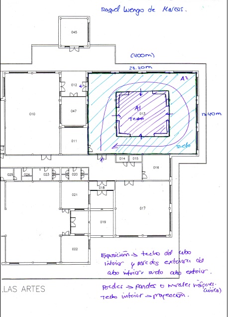 Disponemos de una sala de aproximadamente 400 metros cuadrados (23.20m x 14,40m) correspondiente al taller/aula de escultura situada en el Anexo 2. Debemos adaptar esta sala para la realización de una exposición bajo la temática de trabajo que cada de nosotros está desarrollando en su proyecto.