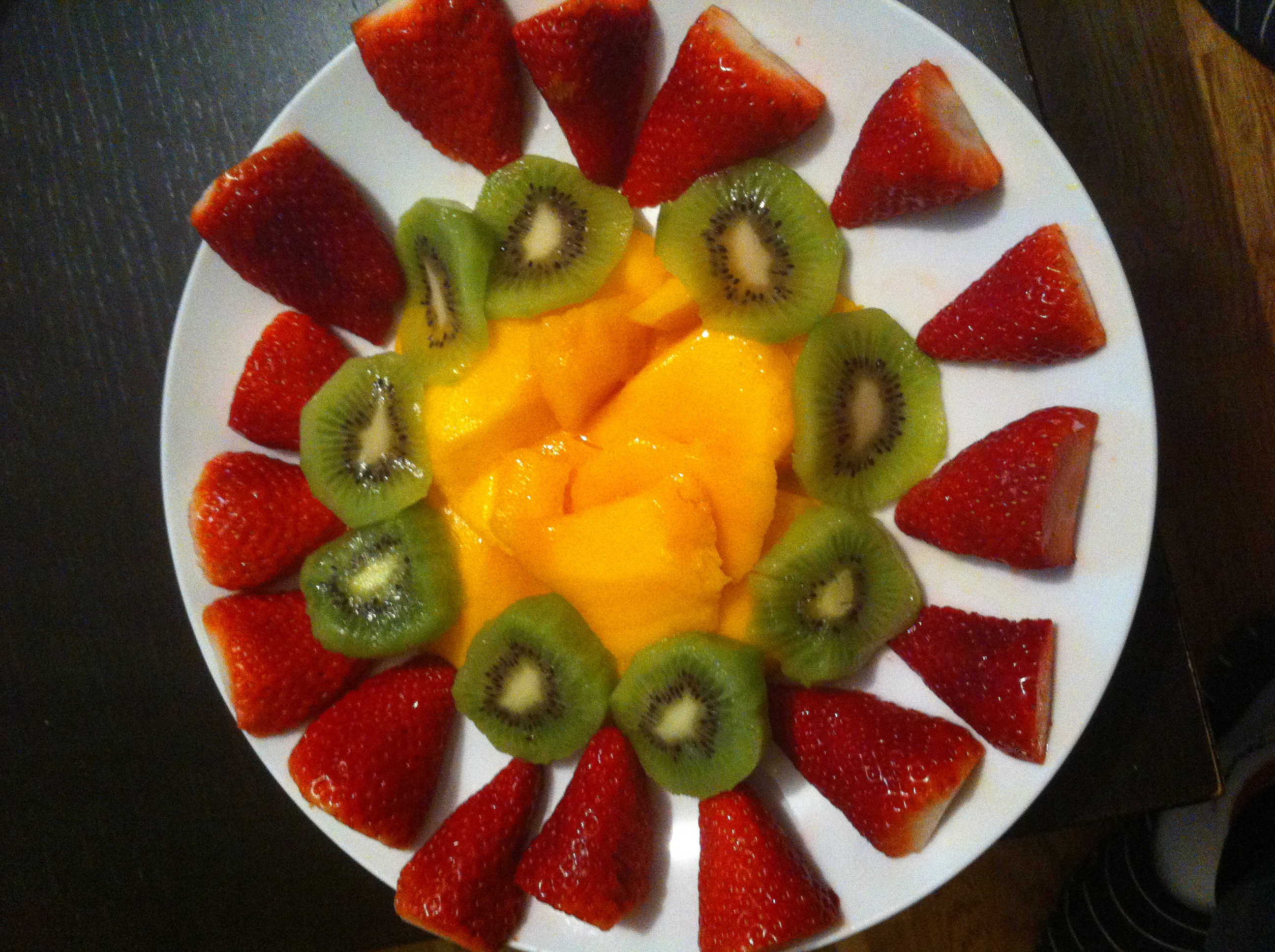 Otra más , probablemente mis tres frutas favoritas : fresas , kiwi y mango.