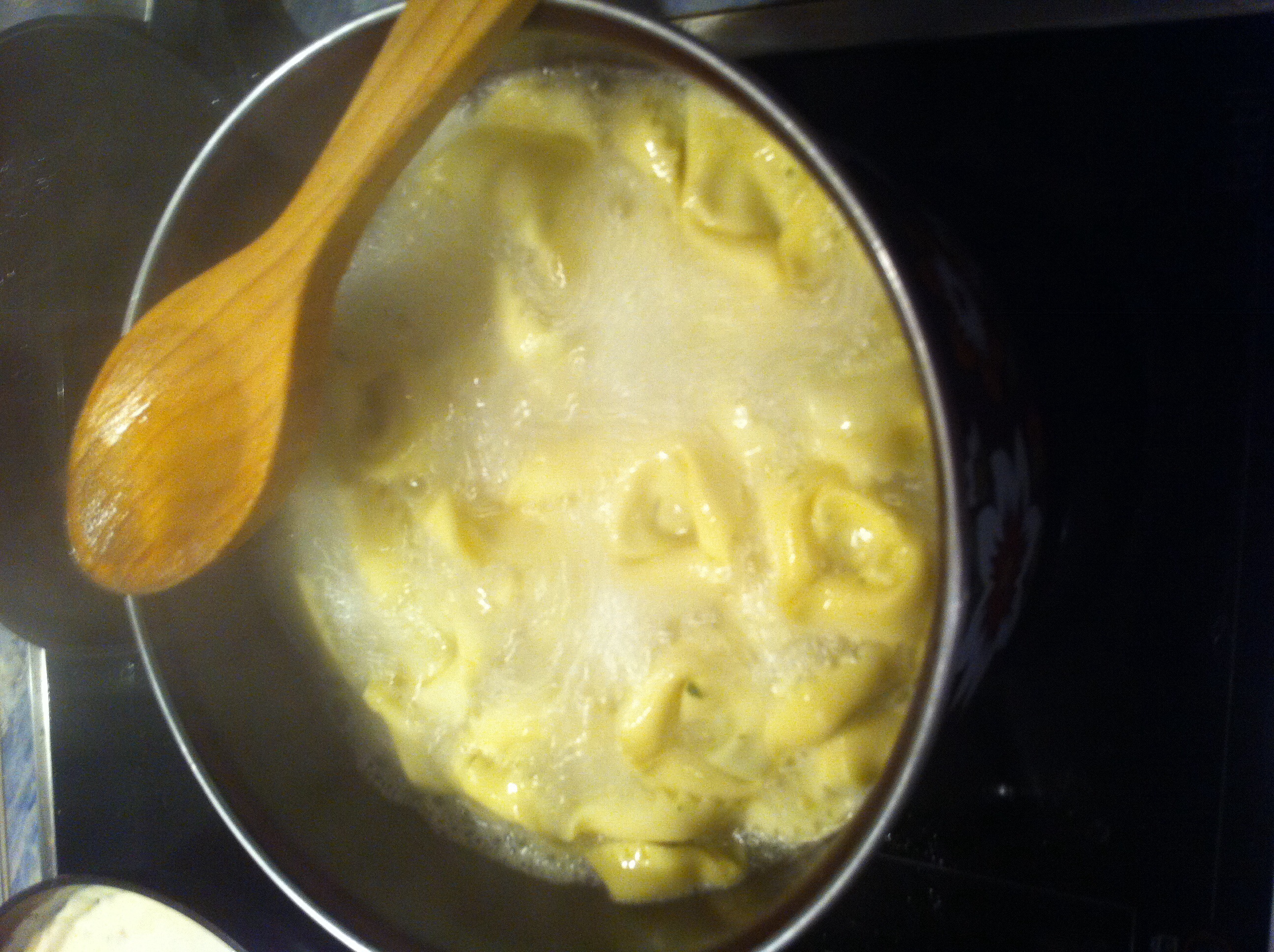 El primer paso es la cocción de la pasta , en una olla grande echamos agua por la mitad y la ponemos a calentar al máximo de temperatura , echamos sal y unas gotas de aceite, hasta que empiece a hervir , en el momento que el agua rompa a hervir echamos dentro la pasta , el tiempo que esté la pasta dentro de el agua varía según el tipo , la pasta fresca en este caso con 4-5 minutos sería necesario , mientras que la pasta normal nos llevaría unos 9.10 minutos.