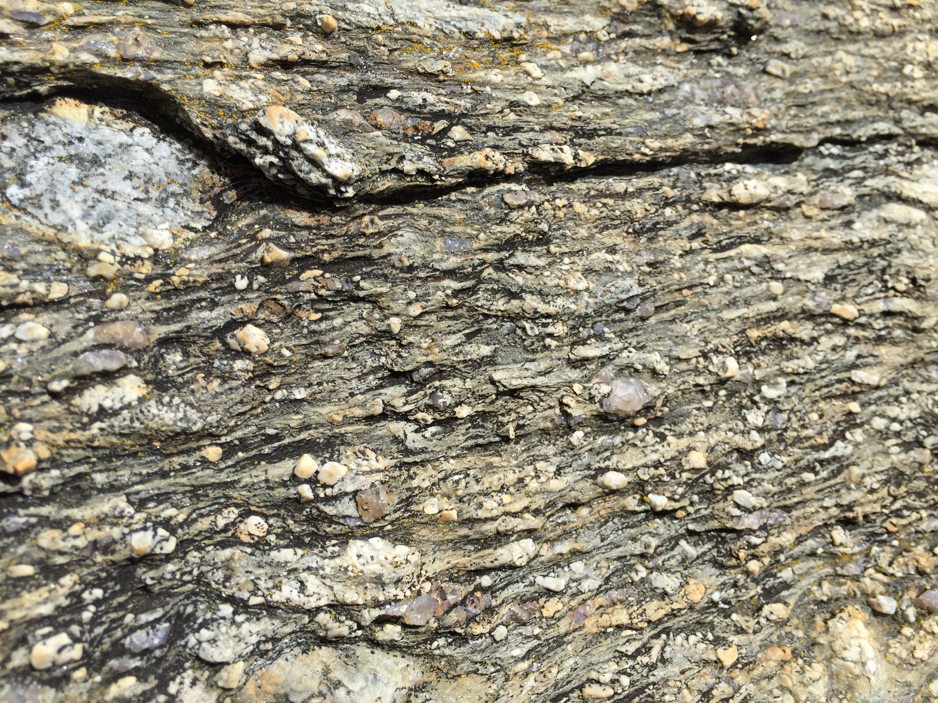 Los gneis de la formación “Ollo de Sapo”, reciben su nombre por los cristales azulados de cuarzo que lo componen ( que recuerda vagamente a los ojos de un sapo). “Los tipos litológicos más abundantes de la unidad gneísica (UG) son ortogneises biotíticos (cuarzo, feldespato potásico, plagioclasa, biotita y moscovita en una matriz filítica con grado variado de metamorfismo), que presentan variaciones importantes en el tamaño de grano de los profiroclastos de feldespato. Muestran texturas típicas de gneises tanto macro como microglandulares. Todas las UG muestran un foliación bien desarrollada” (Díaz García, 2002, p.70).