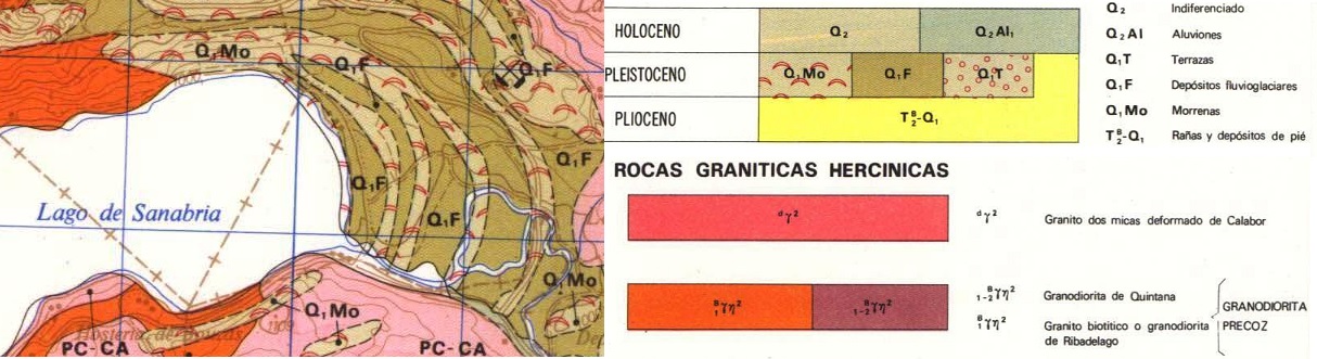En el Pleistoceno, en la última glaciación, o glaciación de Würm, hace aproximadamente 100.000 años, el aspecto de la zona era muy diferente. Según los estudios de Vega et al. (2005), un enorme glaciar de meseta o casquete ocupaba la zona de la altiplanicie de la Sierra de la Segundera y la Cabrera, situado a 1500 – 1700 m. de altitud. “La capa de hielo tenía una superfície de unos 440 Km2” (Cowton et al., 2009, p.289). De esta enorme capa de hielo radiaron lenguas en todas las direcciones. Su avance a través de las cuencas de los ríos preexistentes (Cárdena, Segundera y Tera), y el lento descenso de las lenguas glaciares, fué el resultado del abrupto modelado del terreno que podemos observar. La convergencia de las lenguas del Cañón del Tera, Cárdena y Segundera, aumentaron el potencial erosivo y el volumen del hielo, formándose una cuña de hasta 500 m. de espesor, responsable de excavar la cubeta que hoy en día retiene al lago de Sanabria. “ Longitudinalmente el lago se divide en dos cubetas. La cubeta Este es la más profunda (51 m.) que la Oeste (46 m.). Esta dos máximas profundidades se corresponden posiblemente con los dos centros de máxima presión de los hielos” (Vega et al., 2005, p. 117).