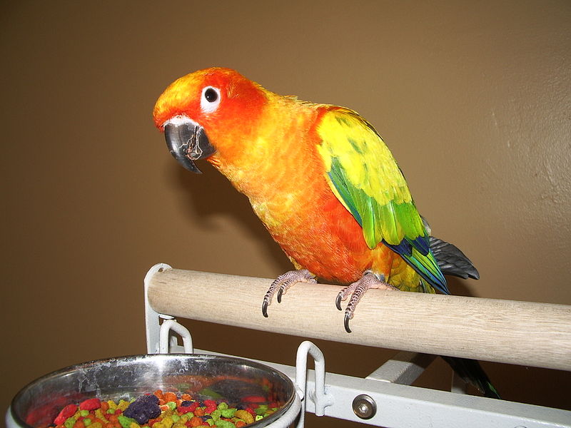 Hoy os voy a comentar un bonito ave conocido por varios nombres; aratinga solar, aratinga del sol o arantiga solstitialis.