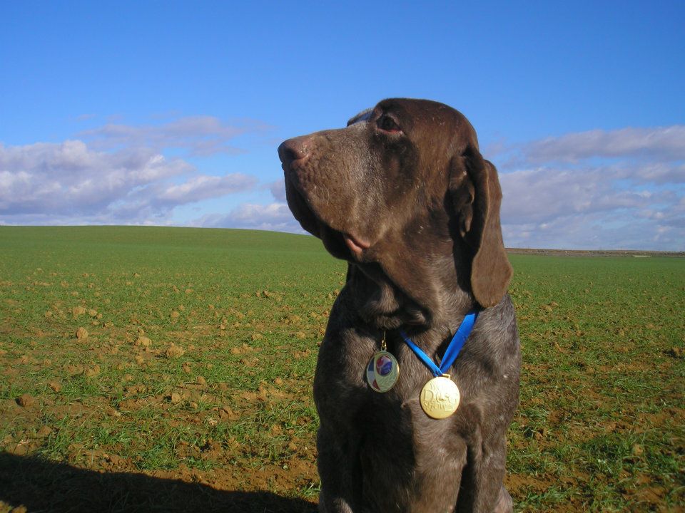 El origen del perro de muestra, antes de la aparición de las armas de fuego, está en la caza con red y en la cetrería como ayudante de las rapaces.