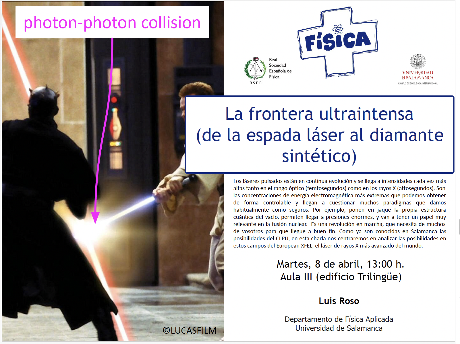 MasFisicaRosoEl martes 8 de abril tendremos otro seminario +Fisica “La frontera ultraintensa (de la espada láser al diamante sintético)” a cargo del catedrático de Óptica de de la Universidad de Salamanca Luis Roso.